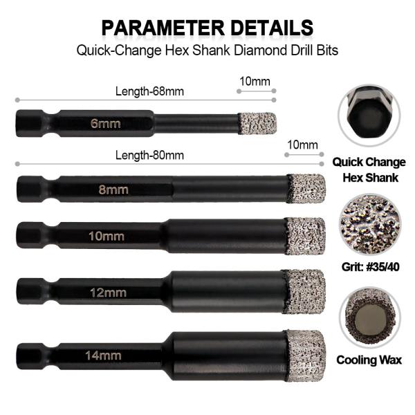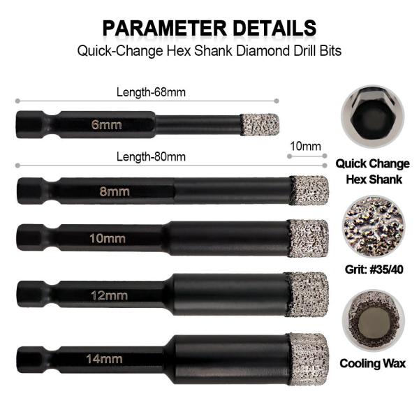 Dry Diamond Drill Bit Quick Shank for Granite Porcelain Tile Ceramic Marble 2/5pcs