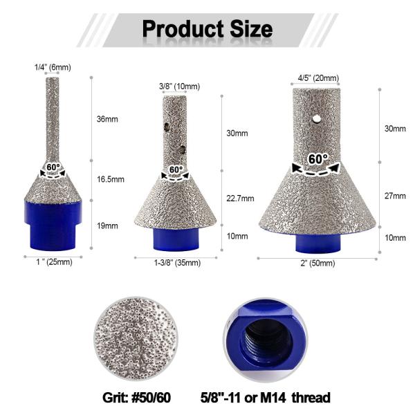 Diamond Milling Chamfer Finger Bits Porcelain Ceramic Tile Marble M14 or 5/8-11