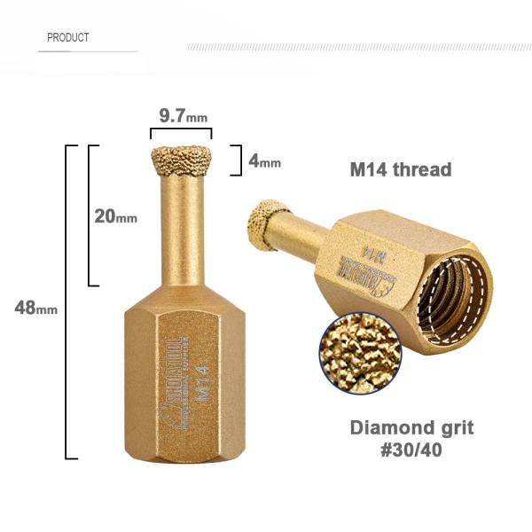 Quantity: 2pcs Specificiation: Dia 10mm,   M14 connection , with water slot Application:  Dry/Wet drilling for granite &...
