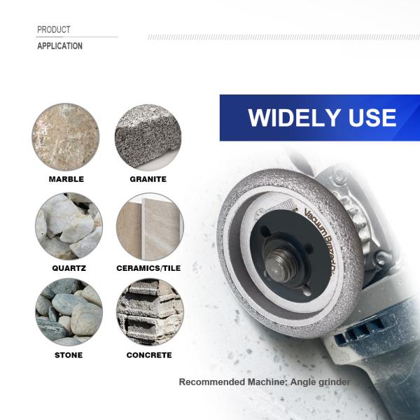 We have 5 sizes available Specification:  Diameter 3"/75mm, Arbor 22.23mm,Diamond Height: 10mm/15mm/20mm/25mm/30mm,Grit: #60 Machine: Angle grinder Application: Grinding on marble, granite , quartz...