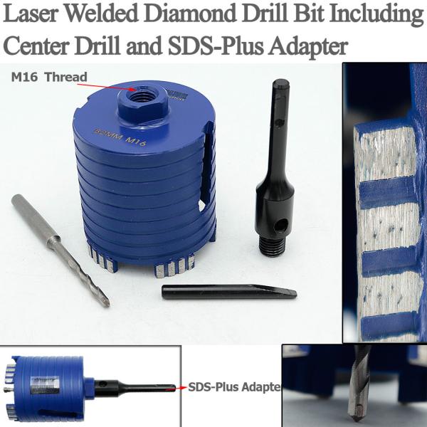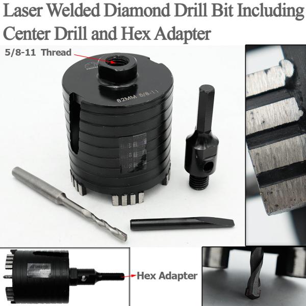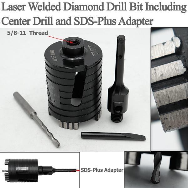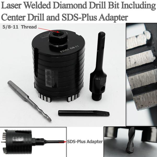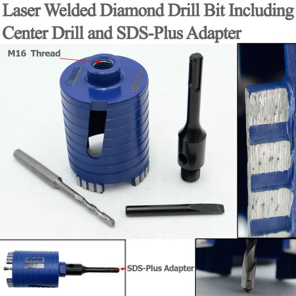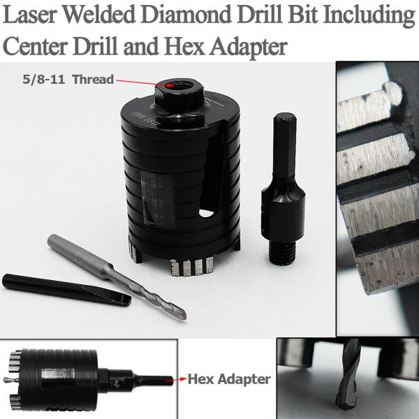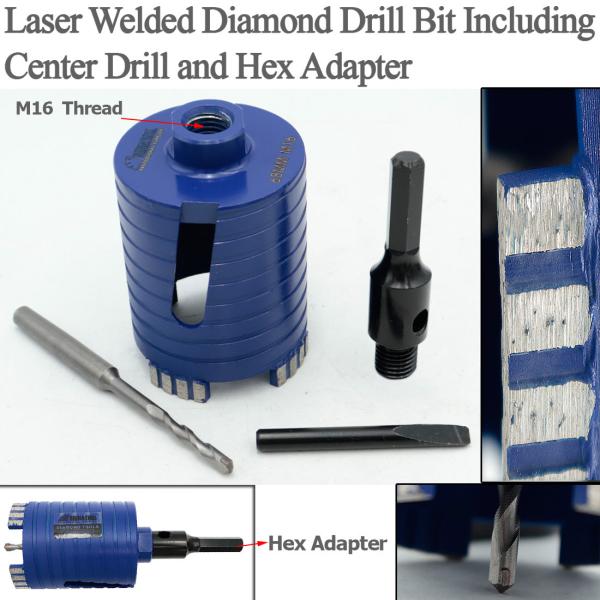 Item: Laser Welded Diamond Core Drill Bit Including Center Drill and SDS-Plus or Hex Adapter