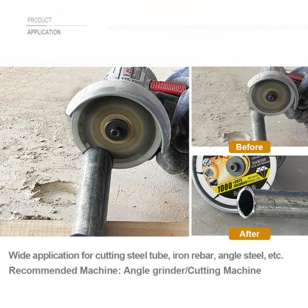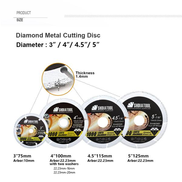 Specification: Diameter 4"/100MM, 4.5"/115MM or 5"/125MM, Arbor Hole Size:22.23MM(7/8") Kerf 1.4MM 4"/100MM with a 16m