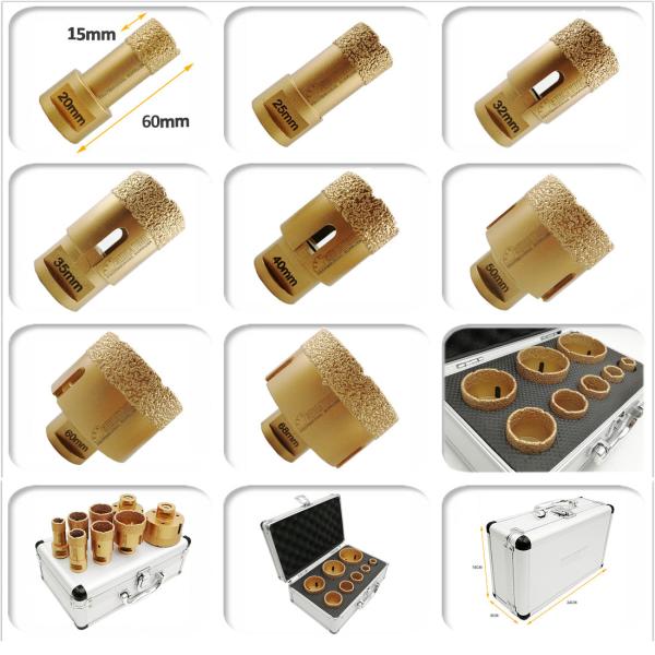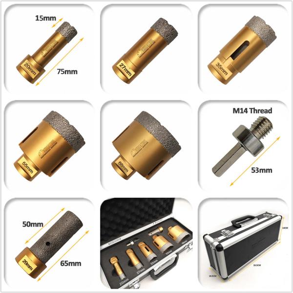 Golden Dry Diamond Drill Bits with box Specificiation: Diamond Height: 15mm; Total Length: 75mm; M14 Thread K1: (Diamet...