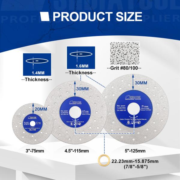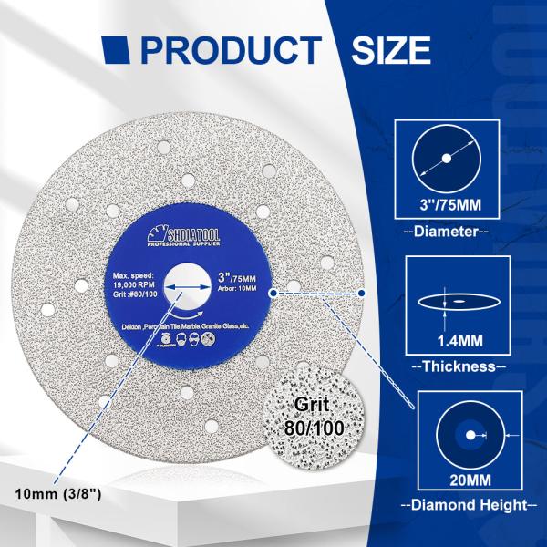 Item: YAKTOOLS 1/2/3pcs Porous Widened Cutting Blade 75/115/125mm Ultra-Thin Disc Dekton Porcelain Tile Marble Glass Gra...