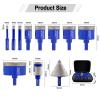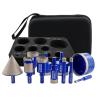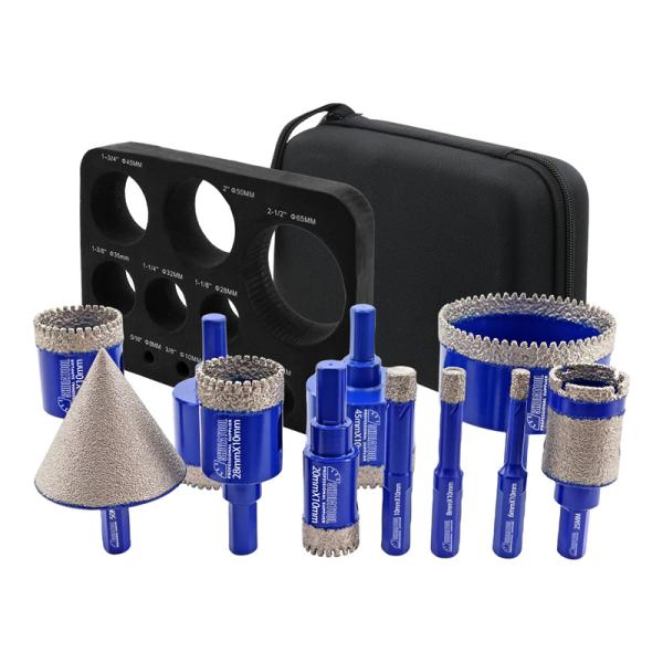 Item : YAKTOOLS 11pcs/set 6-65mm Diamond Drill Bit with Triangular Shankfor Granite Marble Porcelain Ceramic Tile Angle Grinder Color: Blue Quantity: 11pcs With Aluminum Case Specificiation:         ...