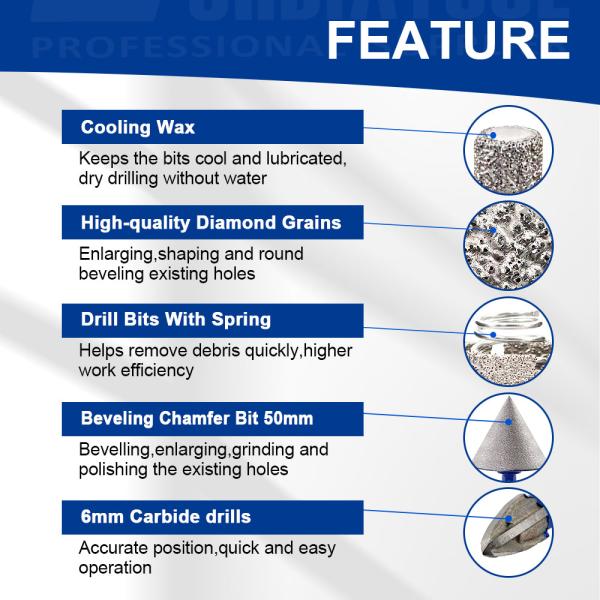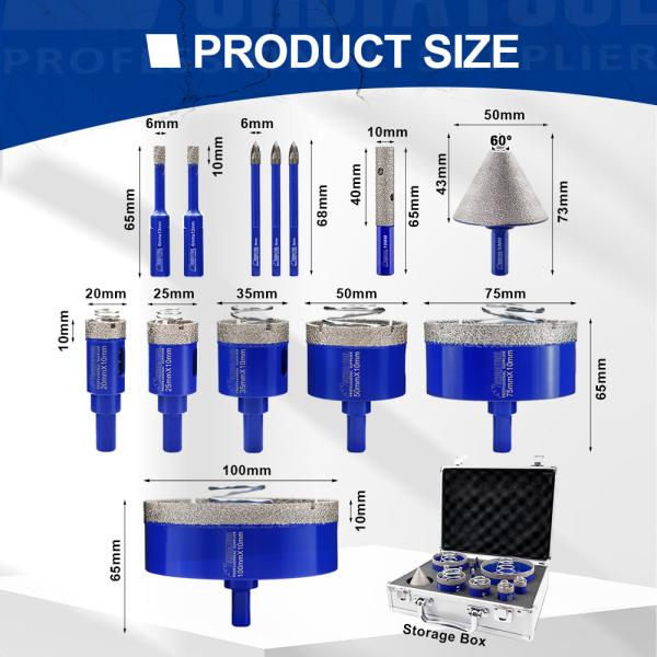 Item : YAKTOOLS 13PCS 6-100MM Diamond Triangle Shank Drill Core Bits 2inch Beveling Chamfer Bit 10MM Milling Bit 6MM Carbide Bit Ceramic Tile Porcelain Tile Ceramic Granite Marble Color: Blue Quantit...