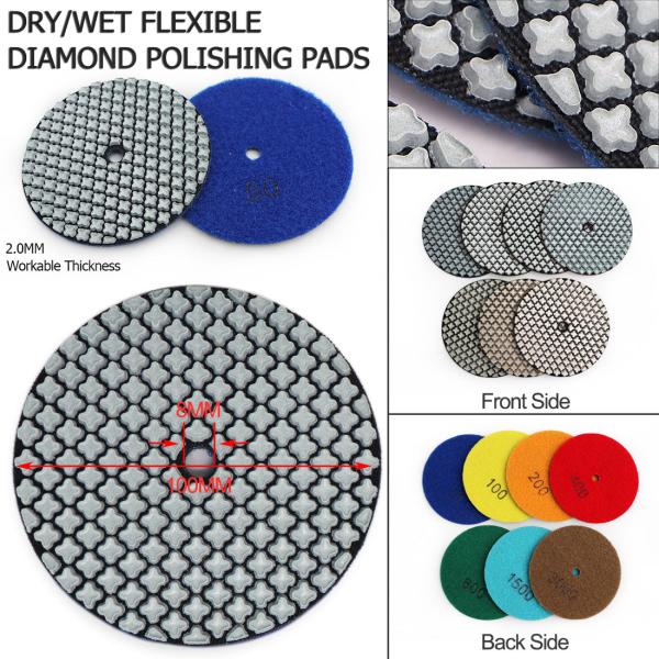 YAK TOOLS 4" Super Diamond Wet/Dry Polishing Pads for Granite Marble