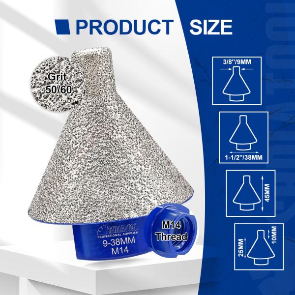 Item: Diamond Drilling Chamfering Milling Bit Quantity: 1/2pcsConnection: M14 Thread or 5/8"-11 ThreadDetails: Dia 9-38...