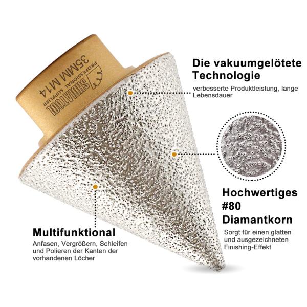 Item: SHDIATOOL Vacuum Brazed Diamond Chamfer Milling Bits Quantity: 1pc,2pcs Connection: M14 Thread Color: Golden Mate...