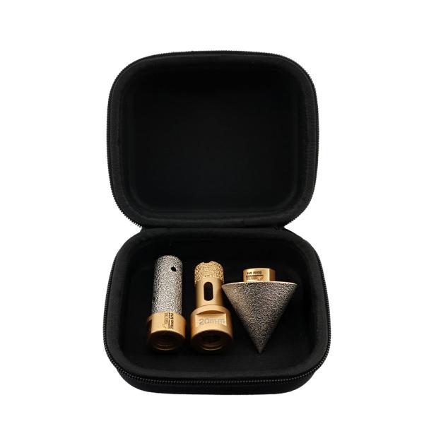 Item:YAK TOOLS Diamond Drill Bits Kit Quantity:  3pcs with Oxford cloth kit Connection: M14 Thread Specificiation  *Drilling Bits Diameter: 20mm,Diamond height: 15mm,Total length: 60mm *Milling B...