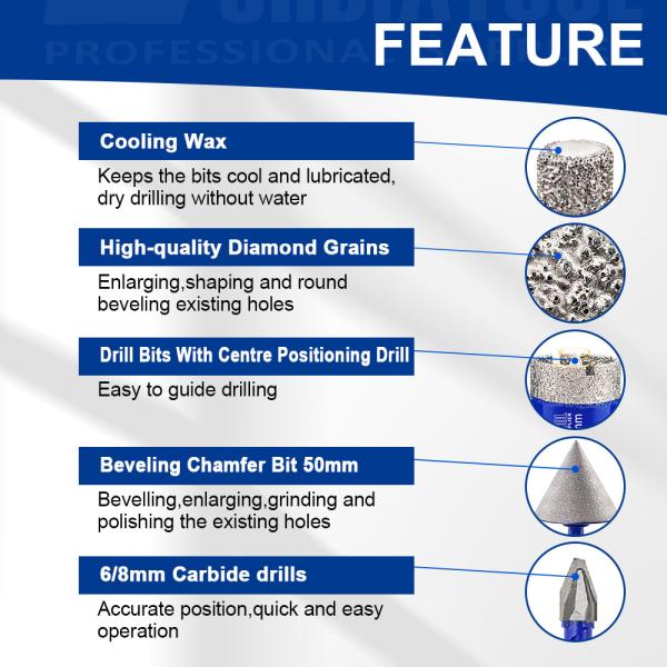 Suitable for dry/wet drilling in Porcelain Ceramic Tile Marble Granite Artificial Stone Quartz, etc.