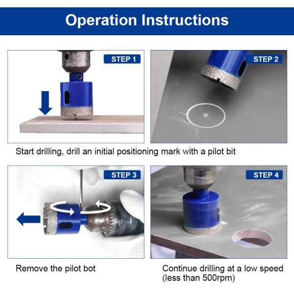 High-quality Diamond and Vacuum Brazed: High-quality base steel, high-quality diamond provides to improve the efficiency of hole drilling.