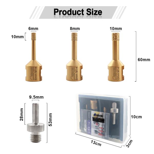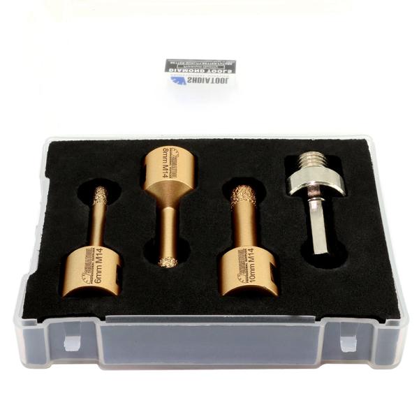 Diamond Drill Bits 4pcs/set 6/8/10mm Core Bit+Adapter Granite Ceramic M14 Thread