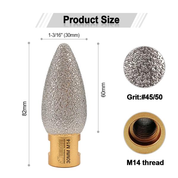 Diameter 30mm,Total length 82mm;Workable Length 60mm;Grit#45/50