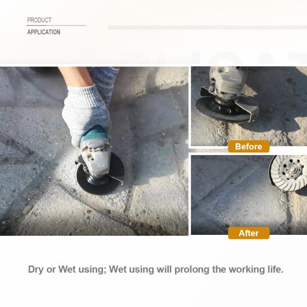 Specification: Diameter 4.5 inch/115mm,  Bore22.23mm,  Grits40-50; Application:  For concrete, Masonry, and some other construction material Feature:   Turbo diamond grinding wheel for aggressiv...