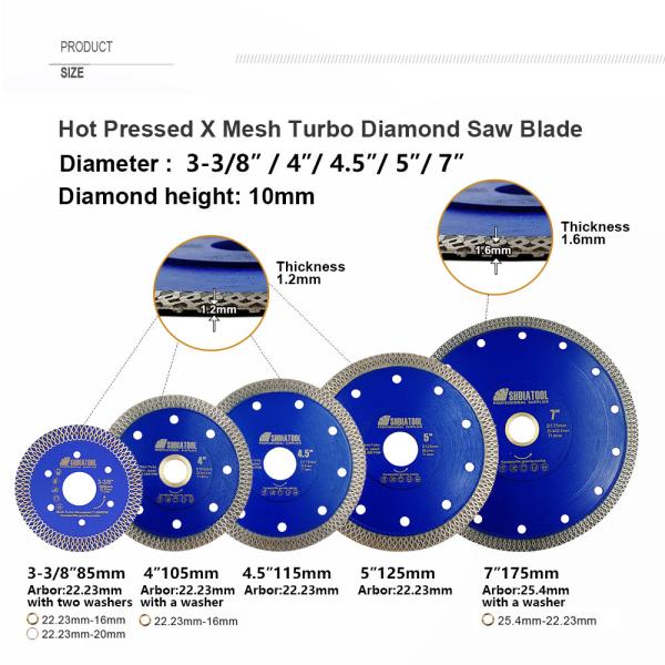 Diameter 4"/105MM, Bore 22.23MM with a 16mm washer,Segment thickness 1.2MM.