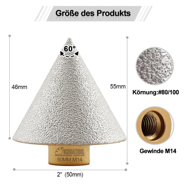 Diamond Beveling Chamfer Bits 2"/50mm Tile Stone Ceramic Granite M14 Thread