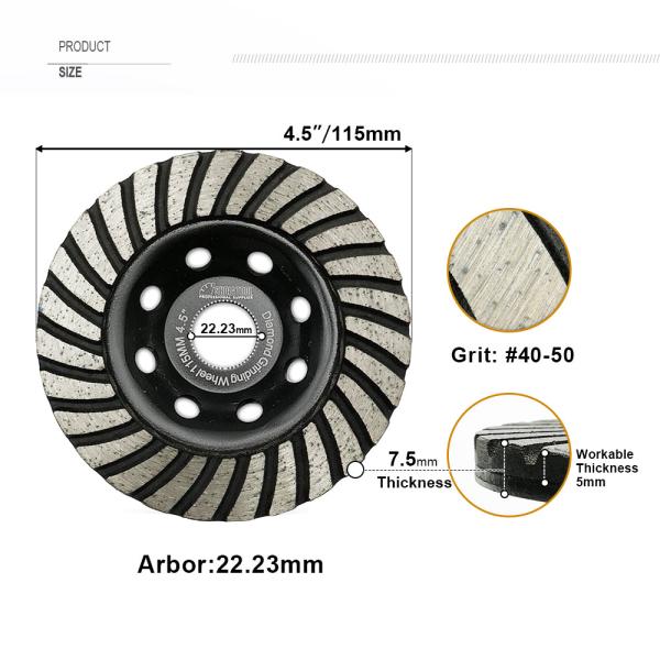 YAKTOLLS Turbo Row Diamond Grinding Cup Wheel for Concrete Granite Masonry Brick 4.5" US Warehouse