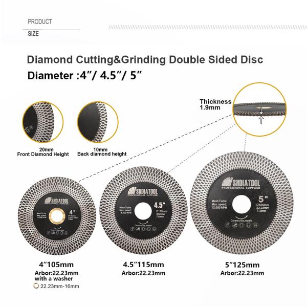 SHDIATOOL Mesh Turbo Saw Blade 5pcs 4.5/5inchs Procelain Ceramic Granite