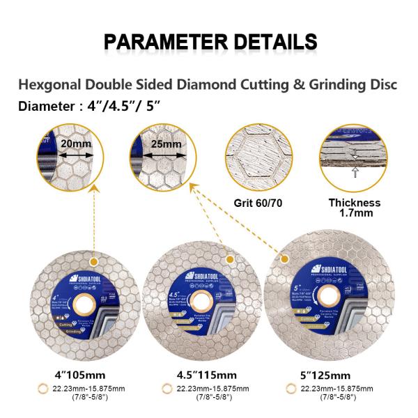 SHDIATOOL Diamond Cutting Grinding Disc 4.5"/5" Ceramic Tile Granite Saw Blade