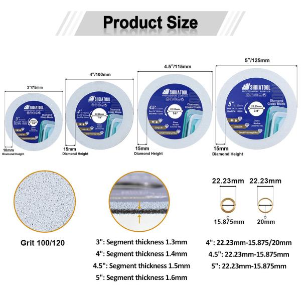 SHDIATOOL Saw Blade 5pcs 4/4.5/5 Inchs Cutting Grinding Ceramic Granite Marble