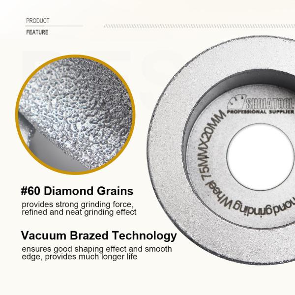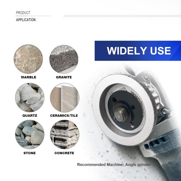 Specification: Diameter 3"/75mm, Arbor 22.23mm,Thickness: 15mm 20mm 25mm 30mm,Grit: #60 Machine:Angle grinder Feature: High efficiency and several times better than electroplated  Can be used dry or w
