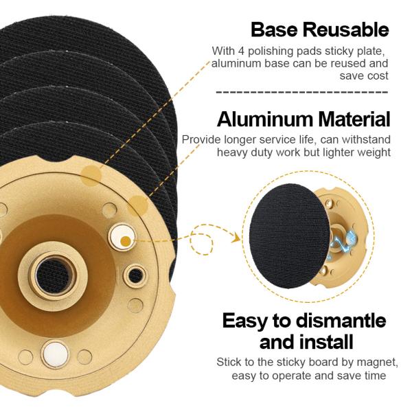 3.Base Reusable: With 4 polishing pads sticky plate, aluminum base can be reused and save cost