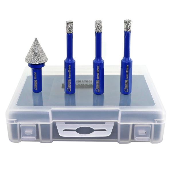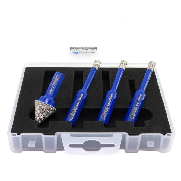 Diamond Drill Bits 4pcs/set Dia 6mm Core Bits Triangle Shank+20mm Chamfer Bit Granite Marble Ceramic Vacuum Brazed Hole Saw