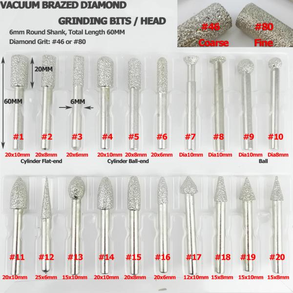 Specification: 20pcs/set, Shank 6mm Length 60mm Grit: #46 or 80