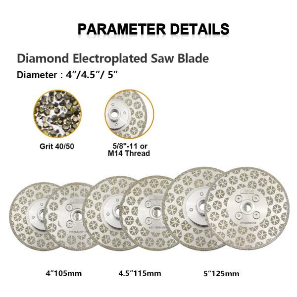 Item:YAKTOOLS Electroplated Diamond Cutting Grinding Disc with Double Side M14 or 5/8-11 Flange Specification: Diameter 4"/105MM,4.5"/115MM,5"/125MM: 5/8-11 or M14 Thread Flange,Grit 40/50 Applicatio...