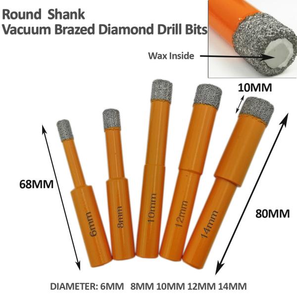 Quantity: 5pcs diamond drilling bits and 1 Box Specification: Diameter 6mm+6mm+8mm+10mm+12mm, Round Shank, diamond le...