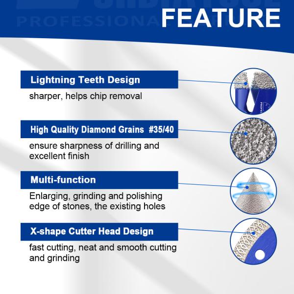1. Drill Bit: Dry/wet drilling for porcelain tile, granite, marble, ceramic;