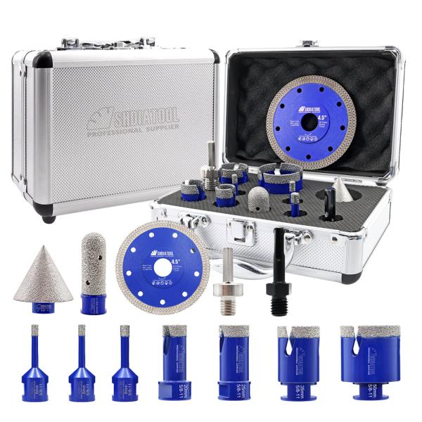 Item: YAKTOOLS 12pcs 6/6/8/20/25/35/50MM Lightning Teeth Diamond Drill Core Bit Kit 20MM Milling Bit 2'' Chamfer Bits SDS/HEX Adapter 115MM X Mesh Cutting Disc for Porcelain Granite MarbleQuantity: 12...