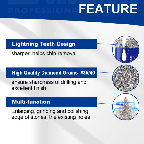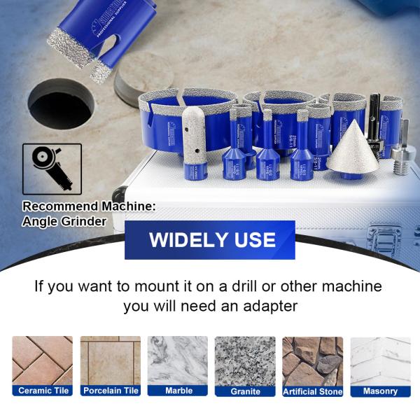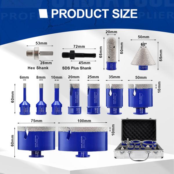 1. Drill Bit: Dry/wet drilling for porcelain tile, granite, marble, ceramic;