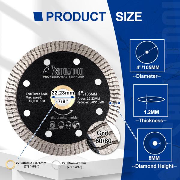 Item: YAKTOOLS 1pc 4inch 105mm Super ThinS Mesh Diamond Saw Blades 4" Ceramic Marble Granite Quantity: 1pc Application:  Suitable for dry or wet cutting of ceramics/tiles, artificial marble and ot...