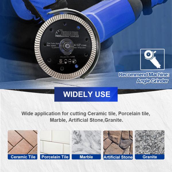 Suitable for dry or wet cutting of ceramics/tiles, artificial marble and other medium-hard materials.