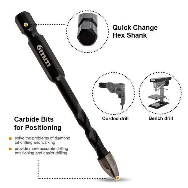 Quantity: 5pcs(4pcs dimaond drill bits+1pc carbide positioning bit)