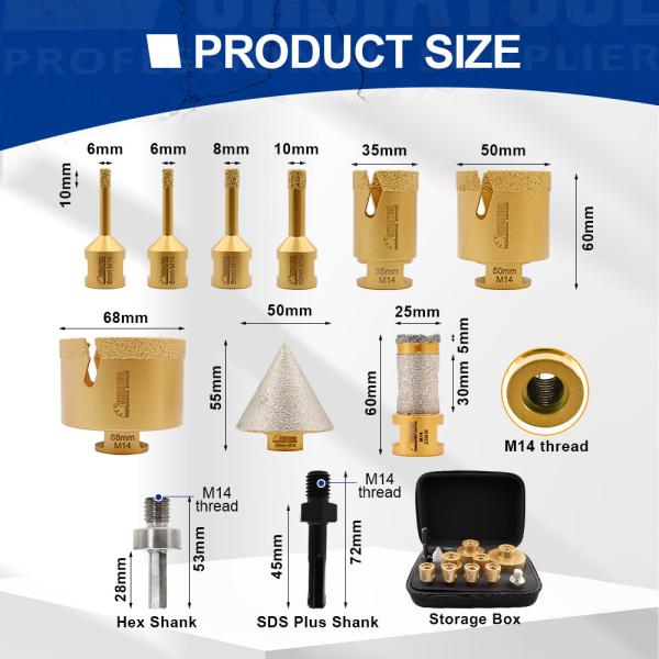 Item: YAKTOOLS Diamond 11pcs/kit Core Drill Bits Milling Bit Chamfer Adaptor Set For Ceramic Tile Porcelain Tile Marble