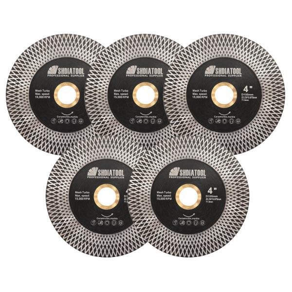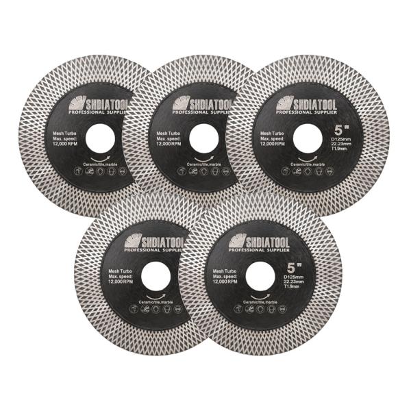 SHDIATOOL Turbo Saw Blades 5pcs 4/4.5/5" Cutting Grinding Ceramic Tile Marble