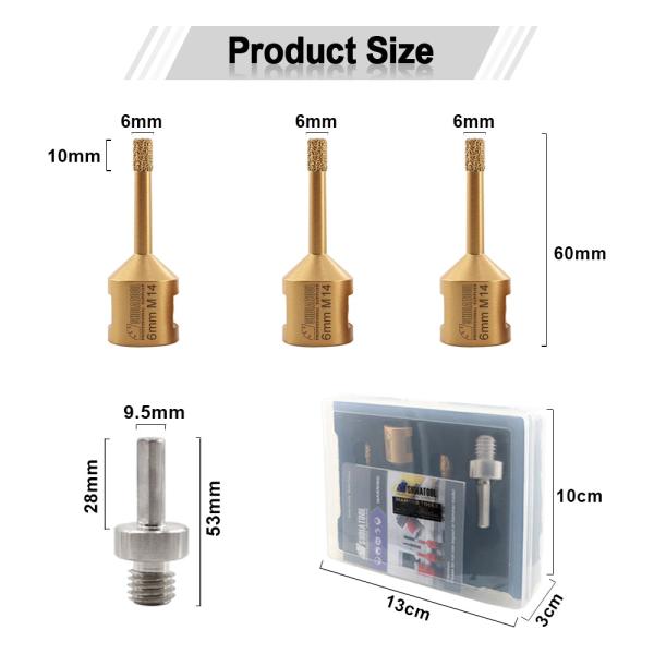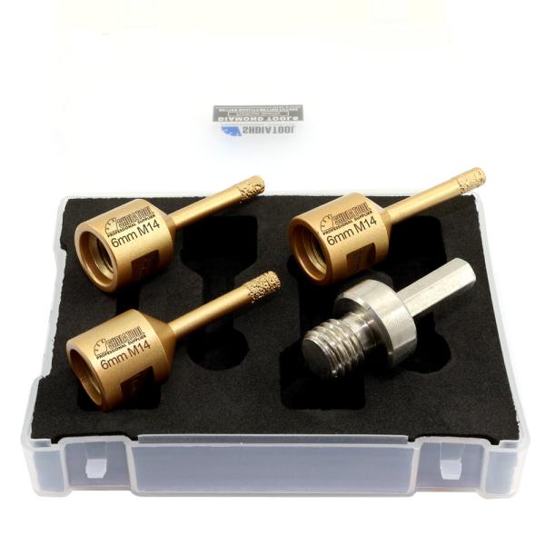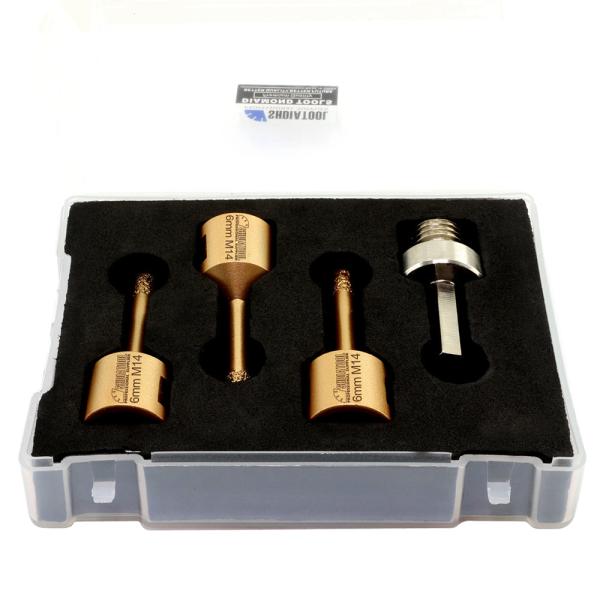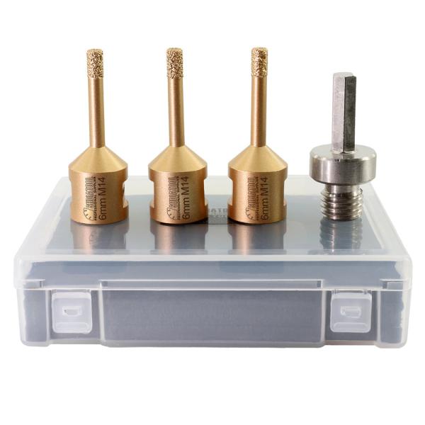 Diamond Drill Bit 4pcs 6/6/6mm Core Bit+Adapter Marble Ceramic M14 Thread