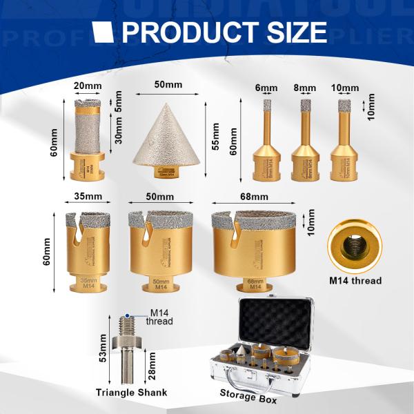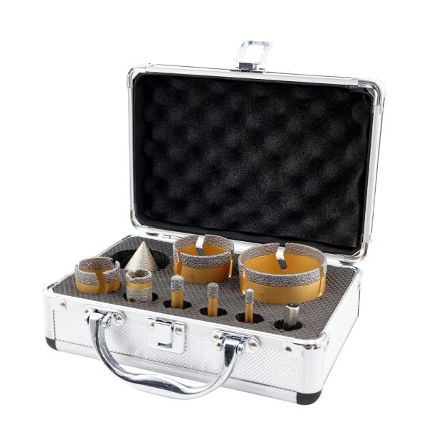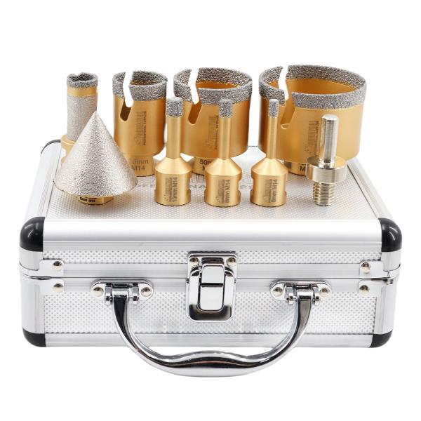 Item: YAKTOOLS Diamond Drill Bits Kit Quantity: 9 pcs,with aluminium box Connection: M14 Thread(EU) Specificiation: ...