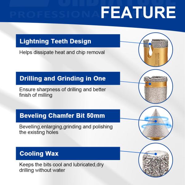 Application: For Drilling Milling and Chamfering porcelain tile, granite, marble, ceramic,etc...