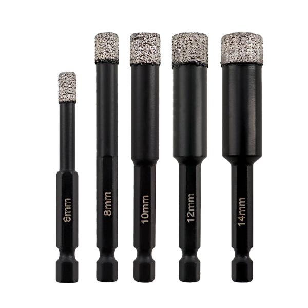 Item: Vaccum Brazed Diamond drilling bits, Dry drilling for stone, masonry, ceramic/tile Quantity: 5pcs(Buy 5pcs, get 1p...