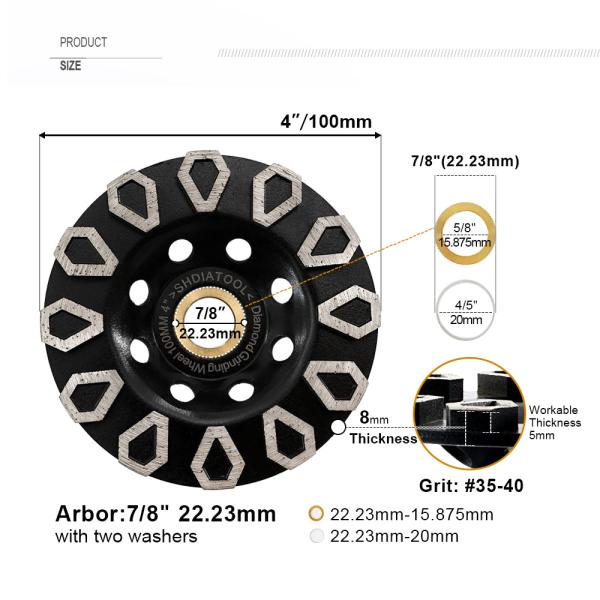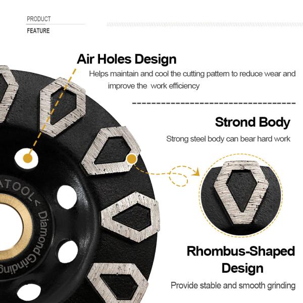 SHDIATOOL Diamond Rhombus-Shaped Cup Wheel 1/2/5pcs Dia 4"/100mm for Concrete Granite Stone Masonry Marble Angle Grinder