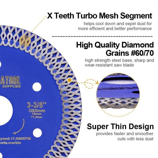Item: YAK TOOLS Hot pressed sintered X Mesh Turbo 85MM Diamond Saw Blade Quantity: 1pc,3pcs Specification: Diameter 3-...