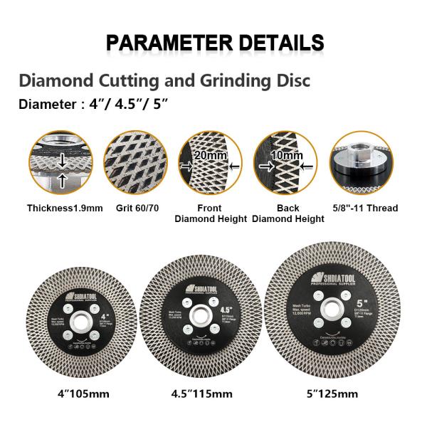 Item:X Mesh Turbo Diamond Cutting Grinding Disc Double-side Segment Tile Marble Granite  Application: Suitable for dry or wet cutting of ceramic tile,marble,granite,artificial stone, etc Specificati...